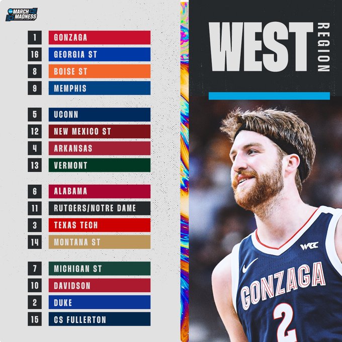 Ncaa Tournament Gonzaga Duke Texas Tech Headlines West Region